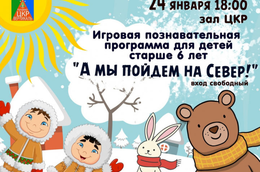 24 января в ЦКР «Вертикаль» пройдет познавательная программа для детей старше 6 лет, посвященная удивительному и загадочному Северу.